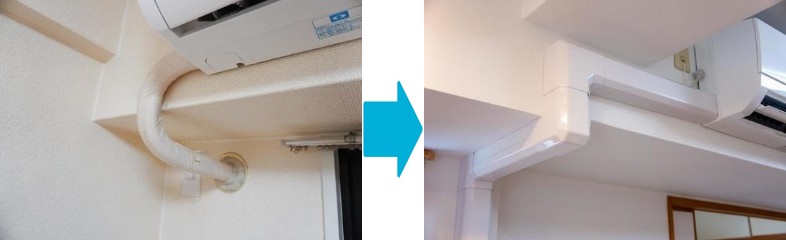 エアコン化粧カバーはオプション工事なので別途料金がかかりますが、美観を損なわずスッキリとした見た目に仕上がります。
